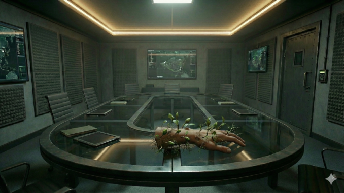 Der Helikopter landet und die Gruppe aus Liam Max und Goran werden von einem Soldaten nach unten in die Kommandozentrale belgeitet. Die Kommandozentrale erinnert stark an eine Mischung aus futuristischem Labor und modernem HQ. Sie werden in einen Meetingraum gebracht, in dem sie auf Rijad stoßen der direkt anfängt loszureden, auf Bosnisch. Rjjad fragt, wie weit man wohl unten ist das man nichts von dem Kampflärm hört. Nach einem kurzen Gespräch warum jeder hier ist, kommt eine Kampftruppe von Astra mit dem Priester herein, mit dem Liam Goran und Max einen Schwur geschlossen haben. Er wirft einen Arm auf den Tisch an dem Pflanzen wachsen und der schon zum Teil nur aus Blattwerk besteht.